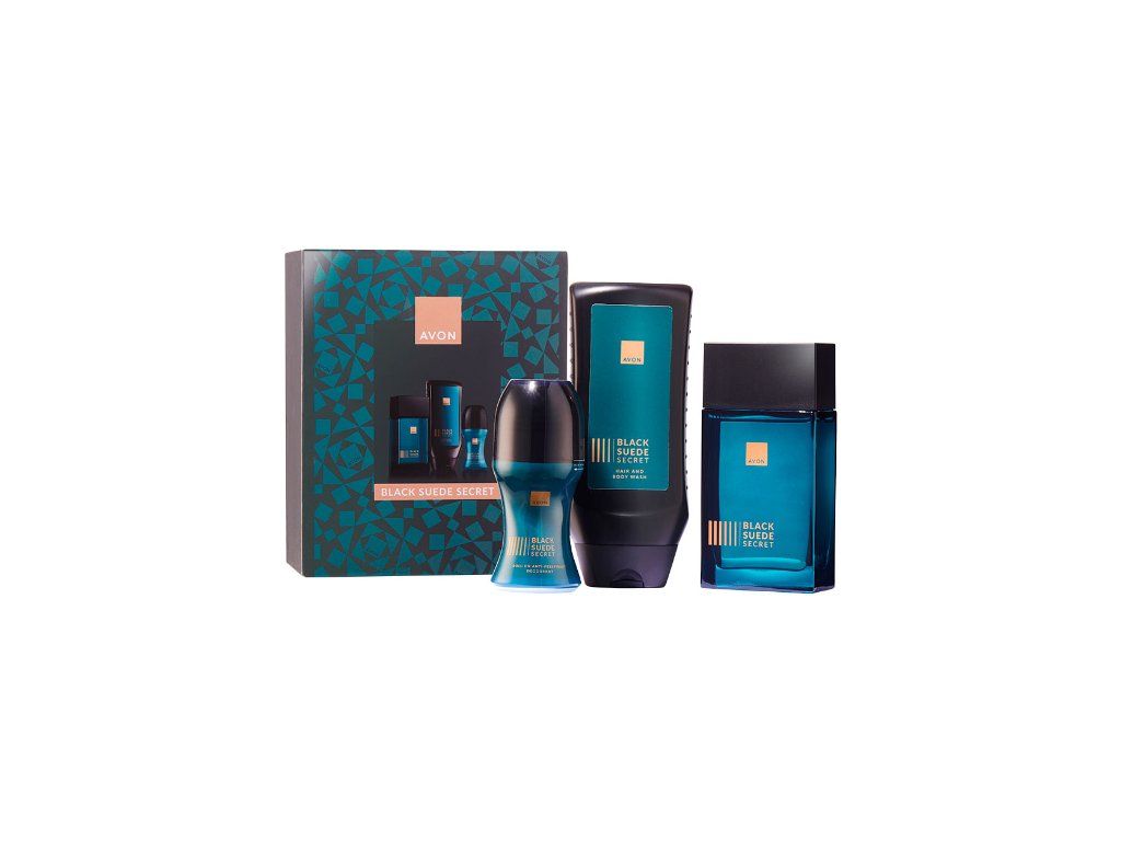 Avon pánská sada BLACK SUEDE SECRET v dárkovém balení EDP 100ml, sprchový gel a roll-on