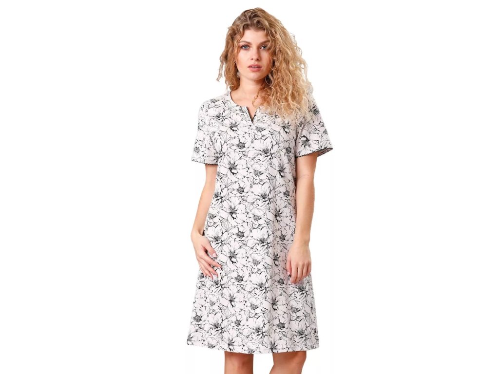 Dámská noční košile Georginia s krátkým rukávem. Košile je s květinovým vzorem a má výstřih do V. Košili je možné použít i jako volné triko na doma.