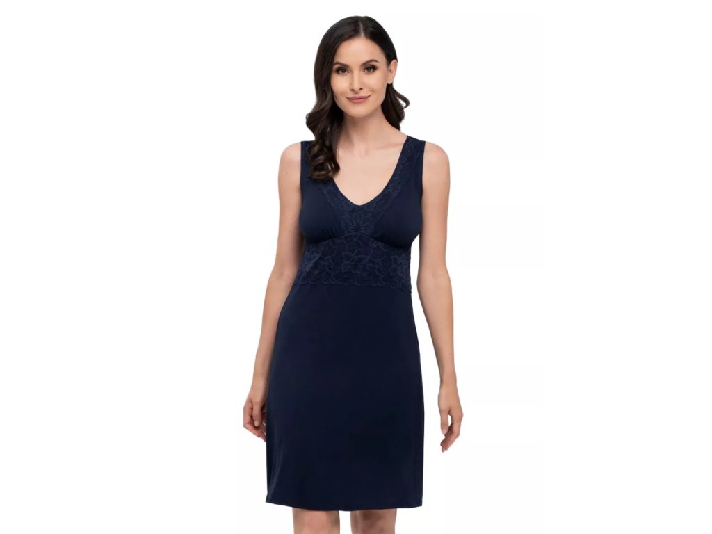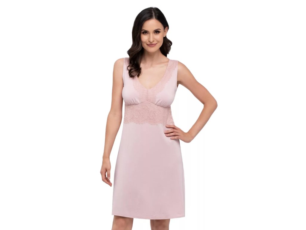 Dámská noční košile na široká ramínka je ozdobená květinovou krajkou ve výstřihu, okolo pasu a na zádech. Noční košile je ušitá z kvalitní měkké viskózy, která poskytuje vysoký komfort při nošení.