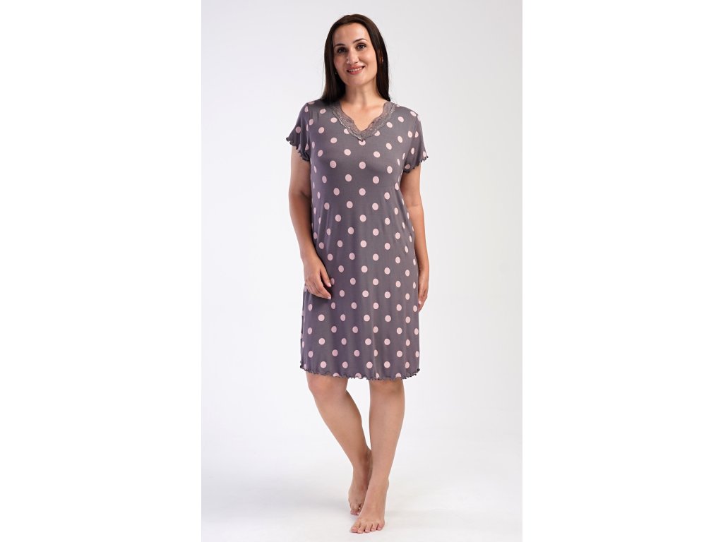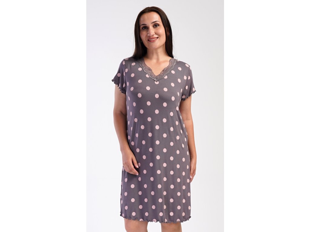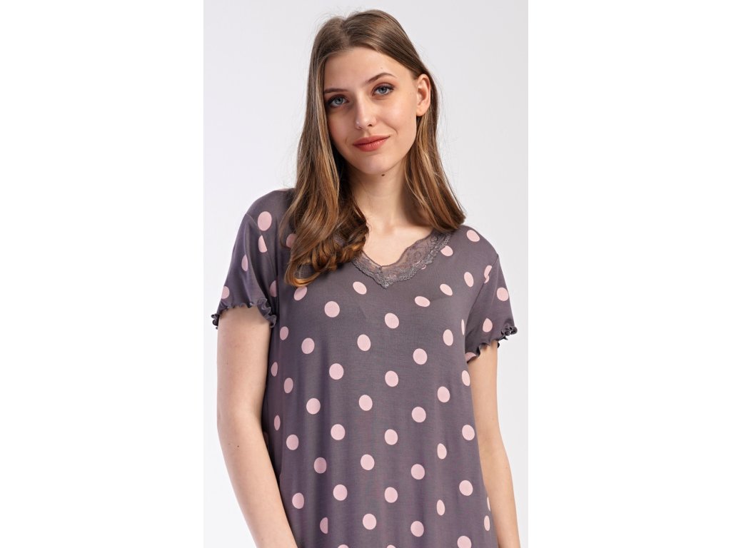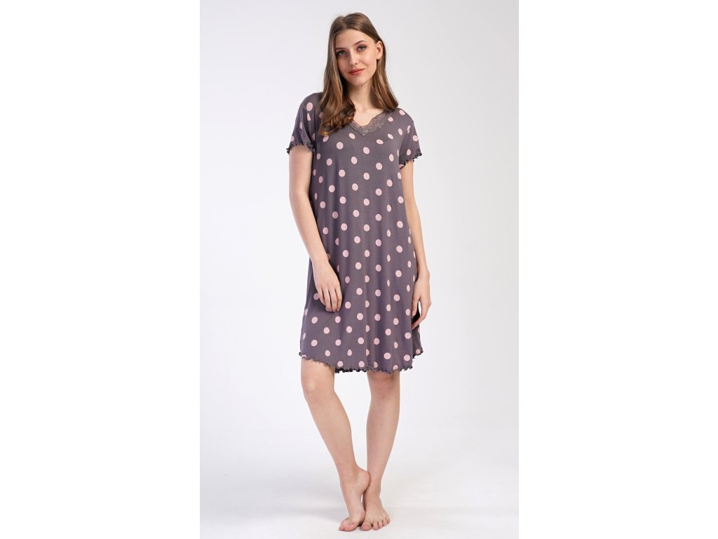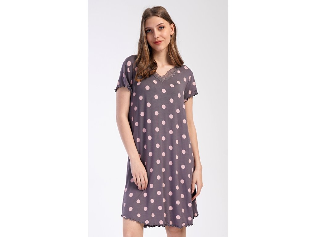 Dámská noční košile s krátkým rukávem Puntíky