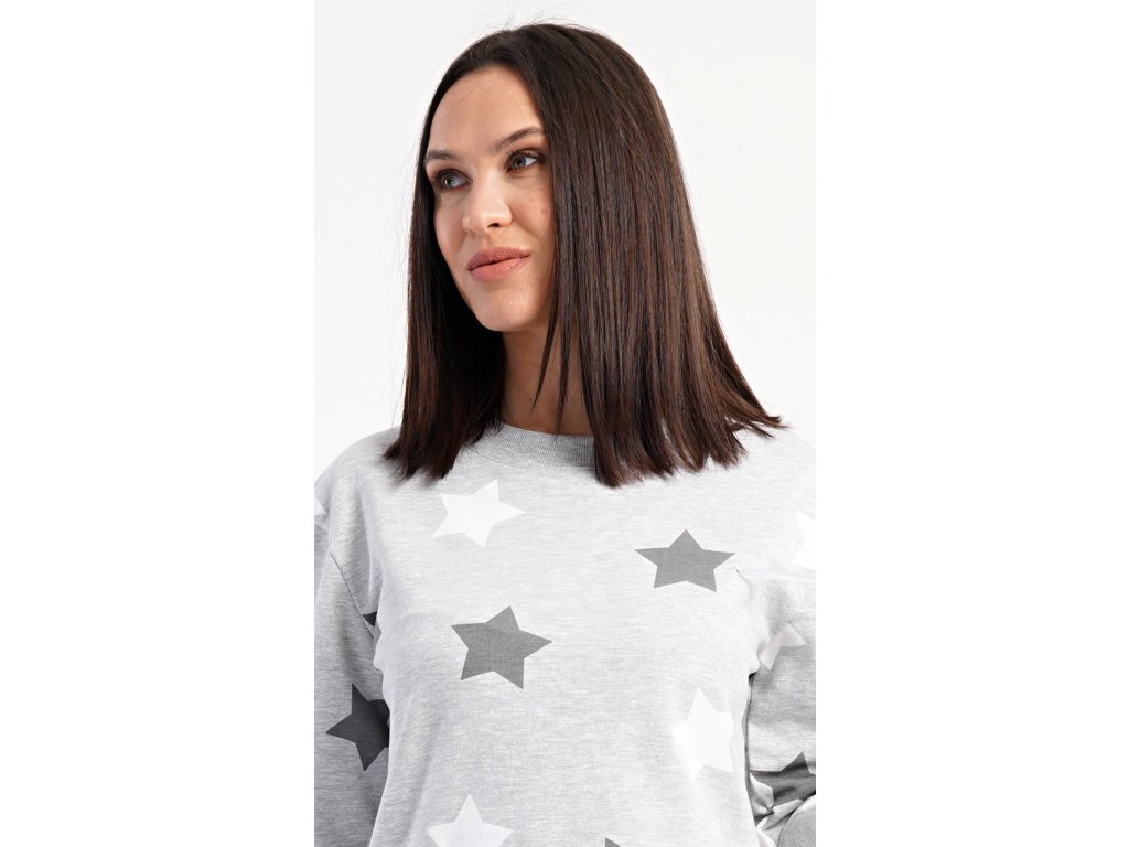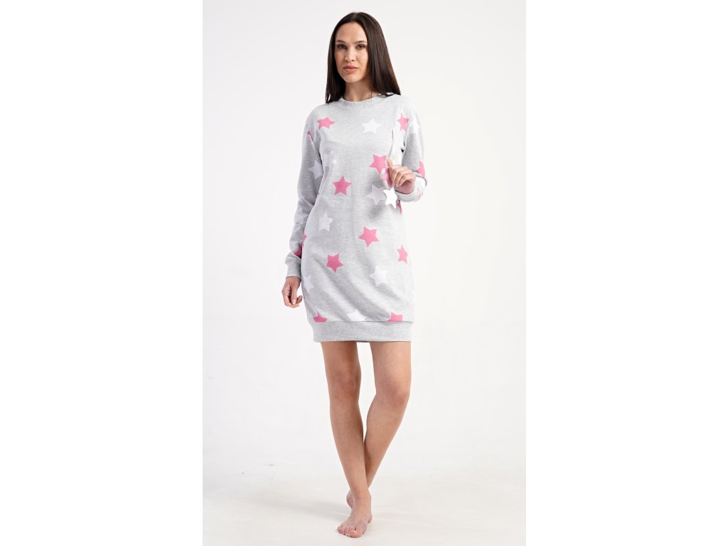 Dámské domácí šaty s dlouhým rukávem Hvězdy. Pohodlné domácí šaty s dlouhým rukávem a kulatým výstřihem zdobí potisk hvězd. Použitý oteplený materiál s obsahem bavlny 70% je příjemný a poddajný na dotek.