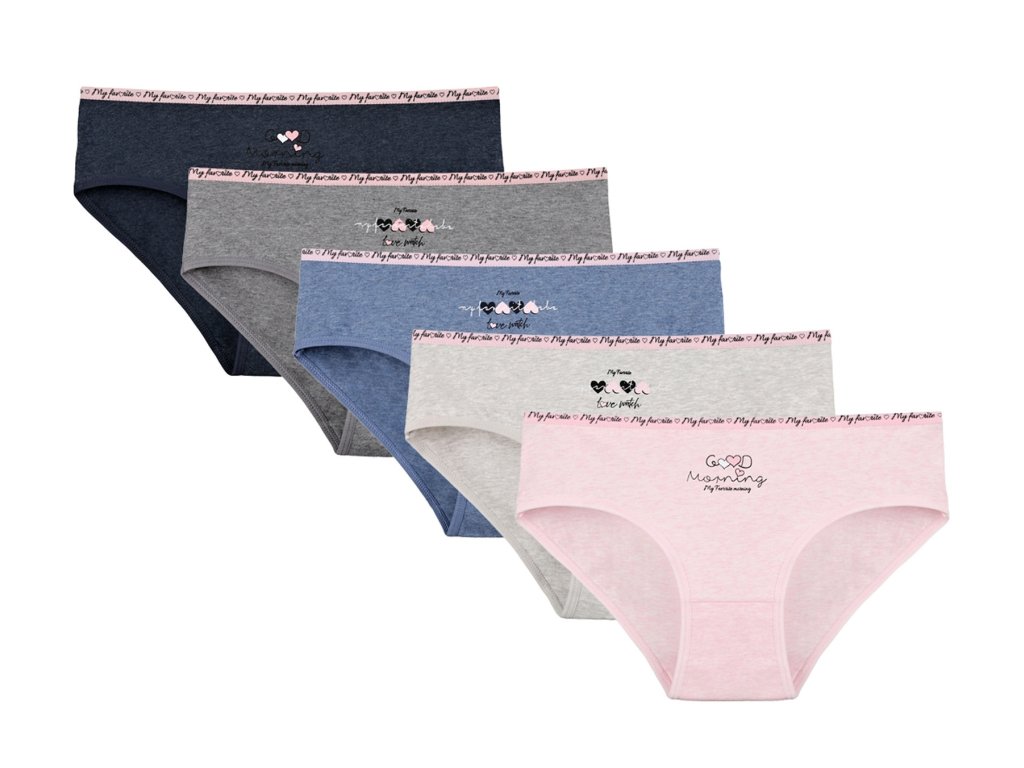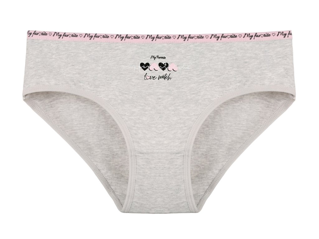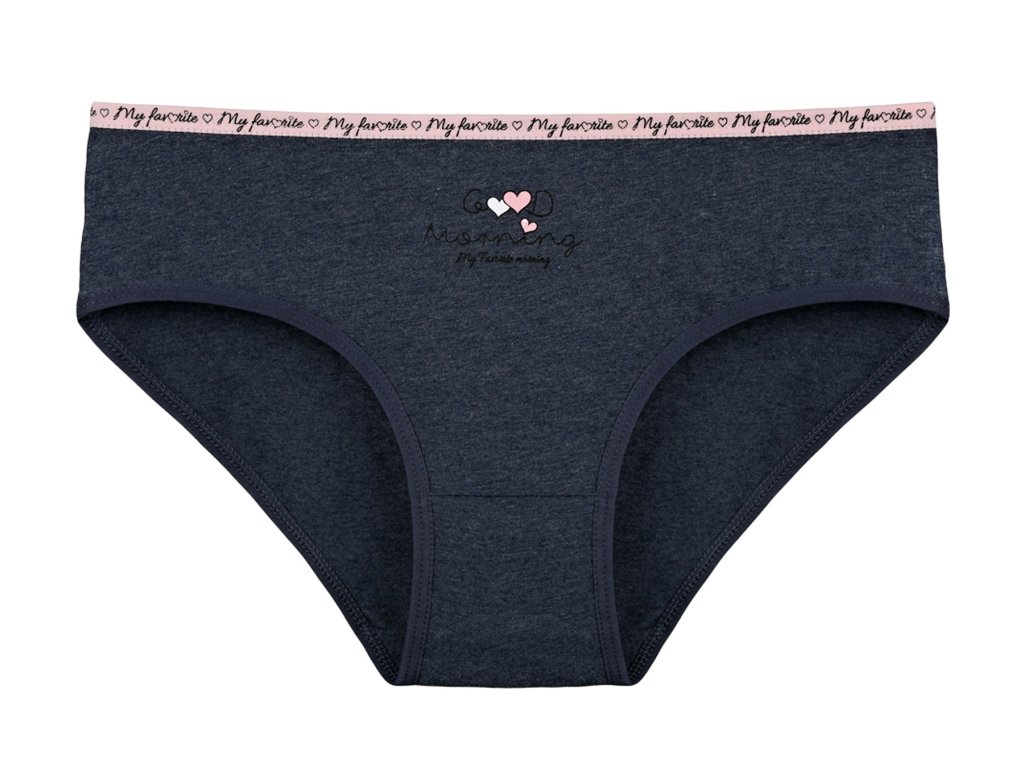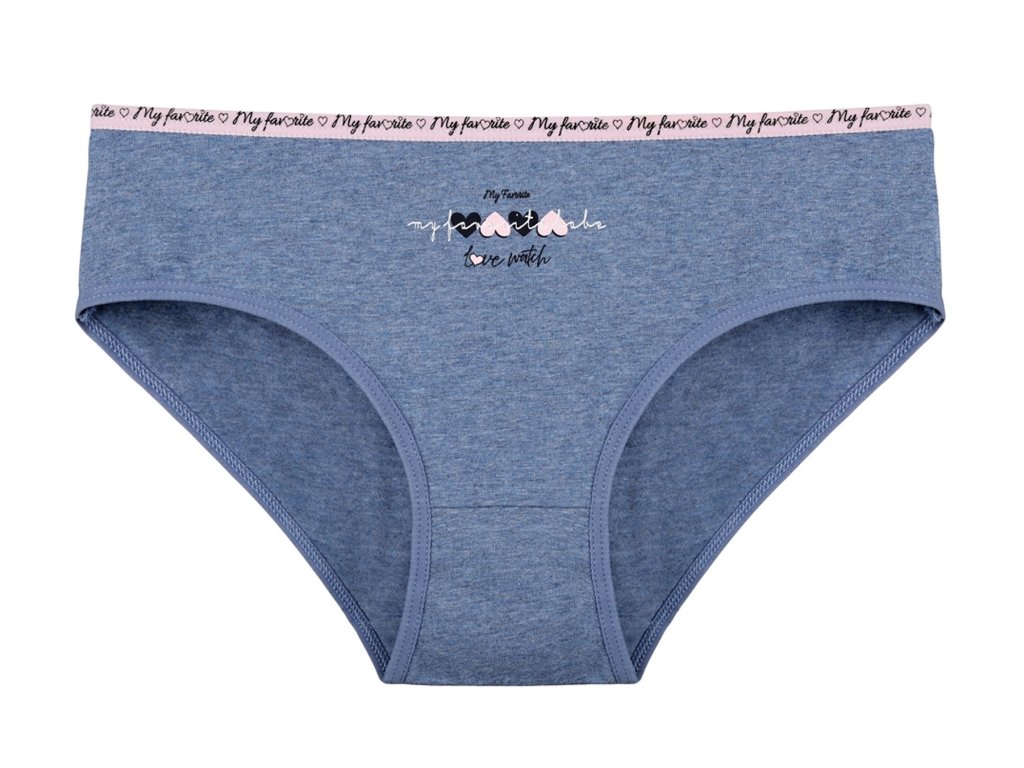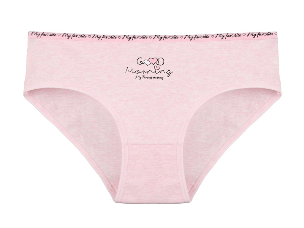 Dámské bavlněné kalhotky Jitřenka. Slušivé klasické kalhotky jsou pohodlným typem spodního prádla pro všechny příležitosti. Jsou zdobené drobnými srdíčky a nápisem. Obzvláště oceníte materiálové složení - 95% bavlna a 5% elasten. Použitý materiál je příjemný a poddajný na dotek.