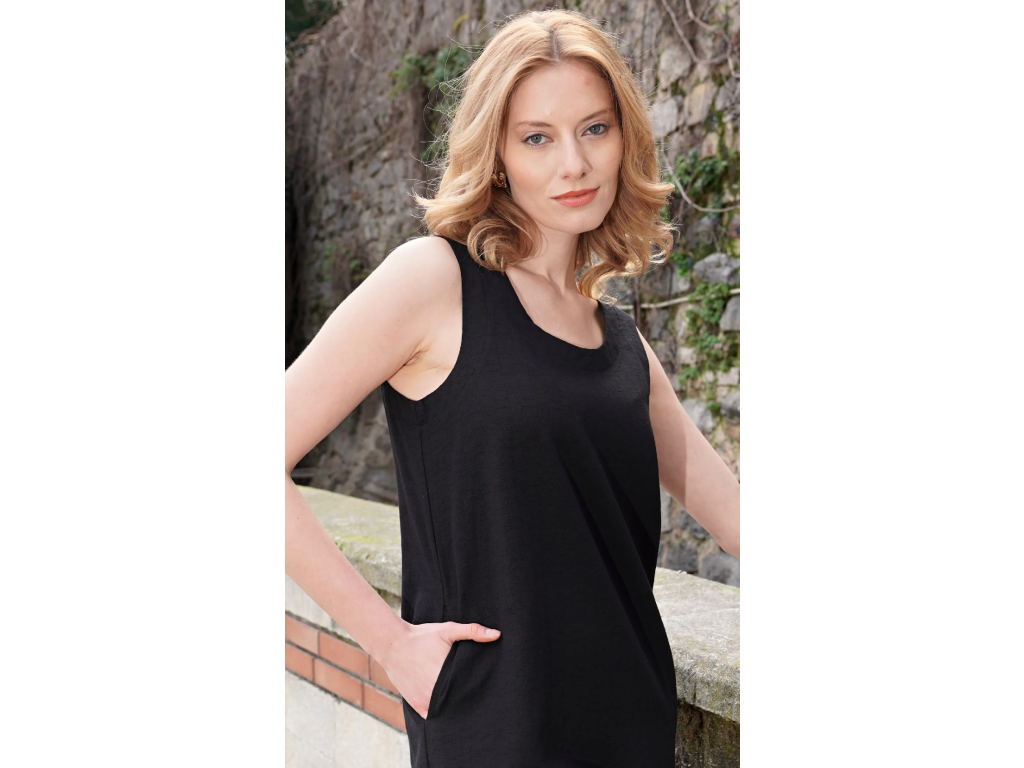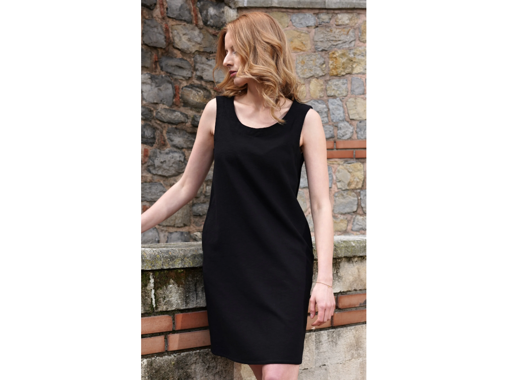 Dámské šaty Barbora. Černé bavlněné šaty s délkou po kolena zdobí praktické kapsy. Jsou elegantní a zároveň pohodlné. Použitý bavlněný materiál je příjemný a poddajný na dotek.