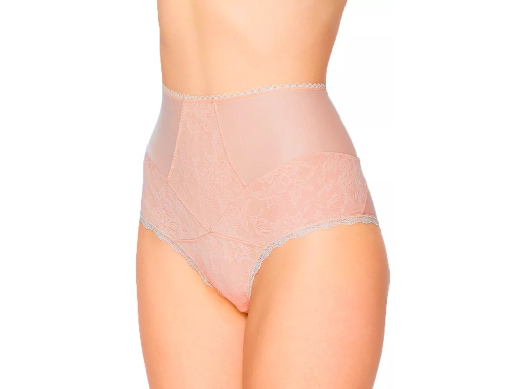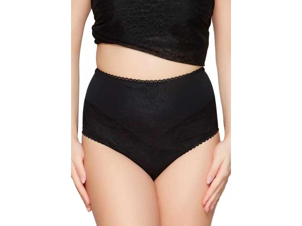 Dámské stahovací kalhotky se zvýšenou linií pasu jsou vpředu a na bocích ozdobené krajkou. Vnitřní část rozkroku kalhotek je podšita bavlněnou látkou. Kalhotky jsou ušité z měkké bavlny s elastanem, který zajišťuje maximální komfort při nošení.