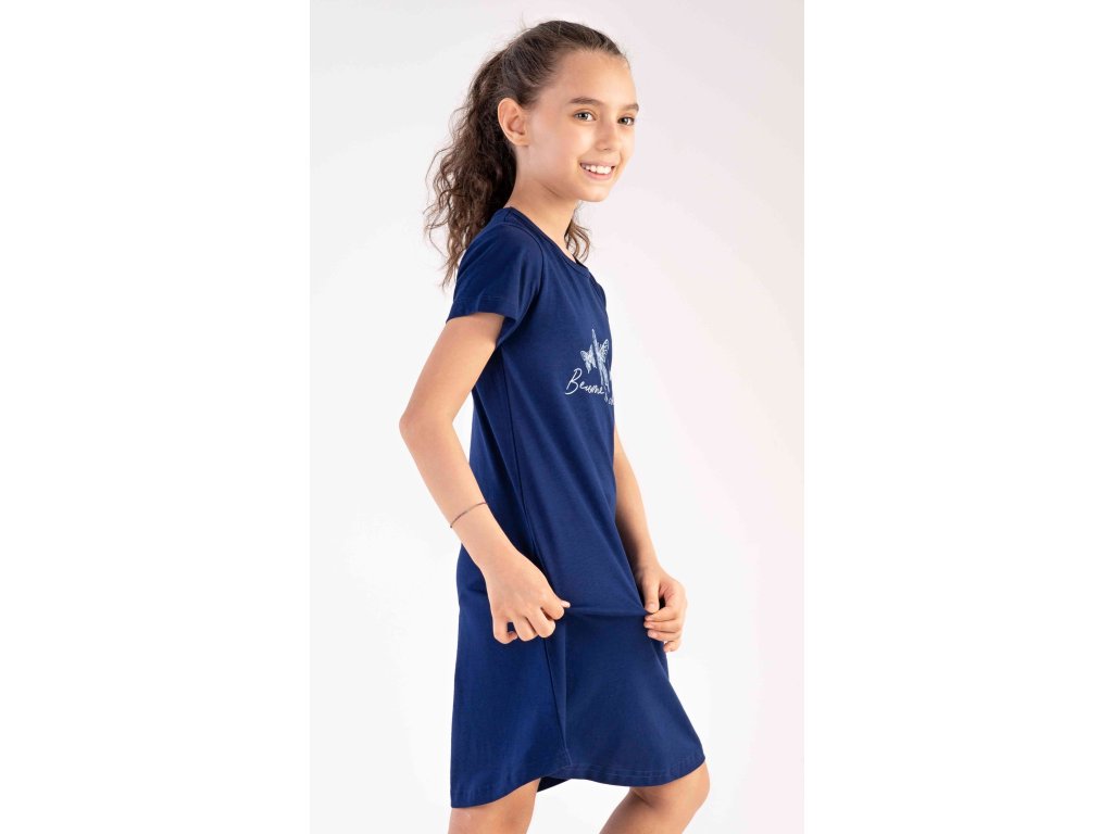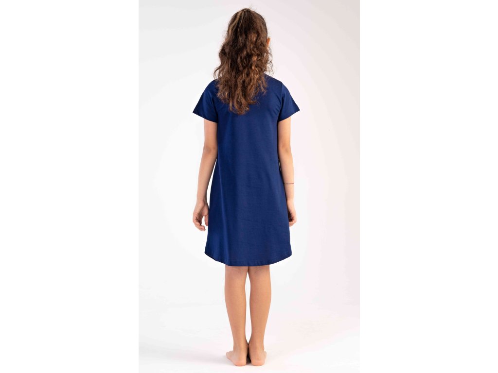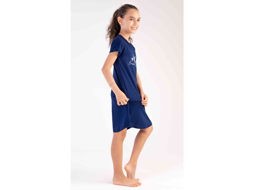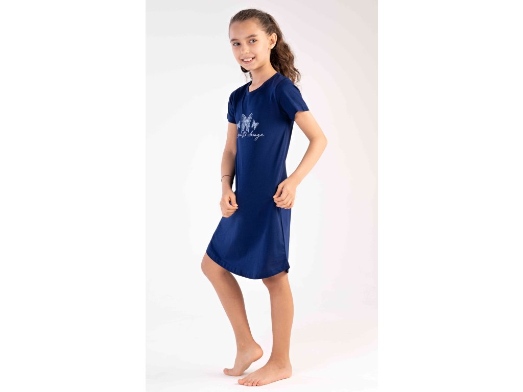 Dětská bavlněná noční košile s krátkým rukávem Butterfly. Na jednobarevné košilce s krátkým rukávem je obrázek tří motýlků. Použitý bavlněný materiál je poddajný a příjemný na dotek.