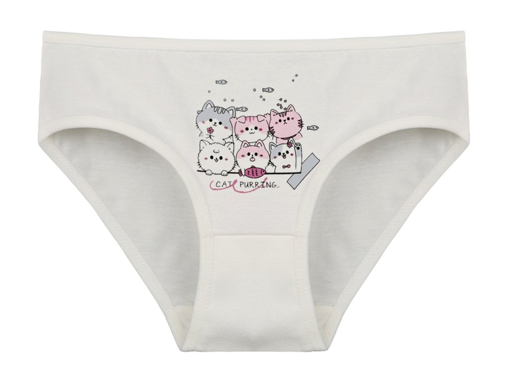 Dětské bavlněné kalhotky Abigail. Dětské kalhotky klasického střihu jsou pohodlné a slušivé, zdobí je obrázek roztomilých koťat. Obzvláště oceníte materiálové složení - 95% bavlna a 5% elasten. Použitý materiál je příjemný a poddajný na dotek.
