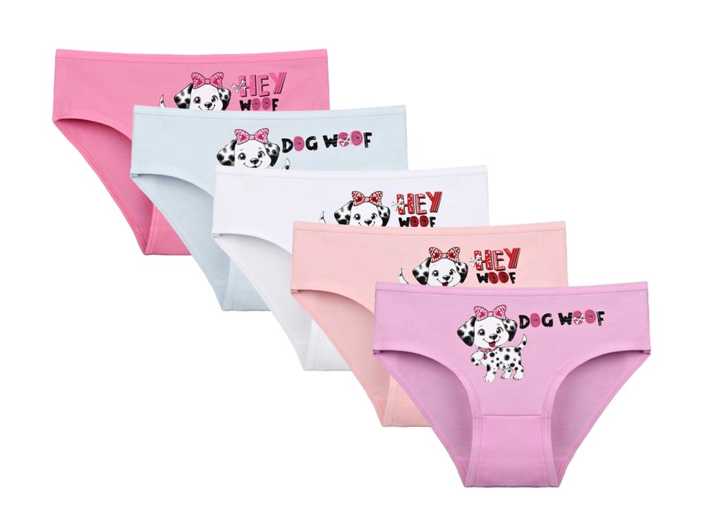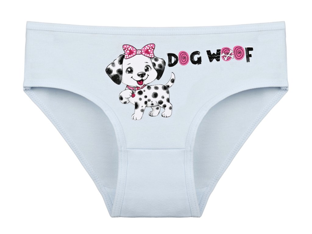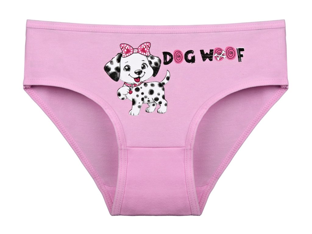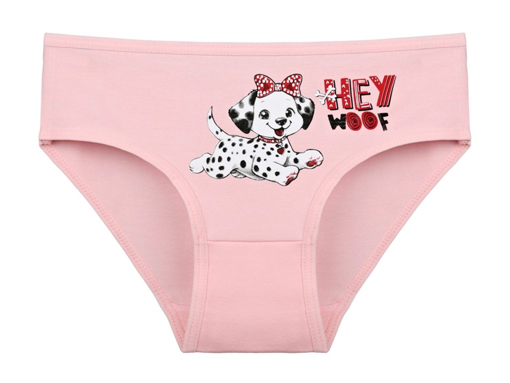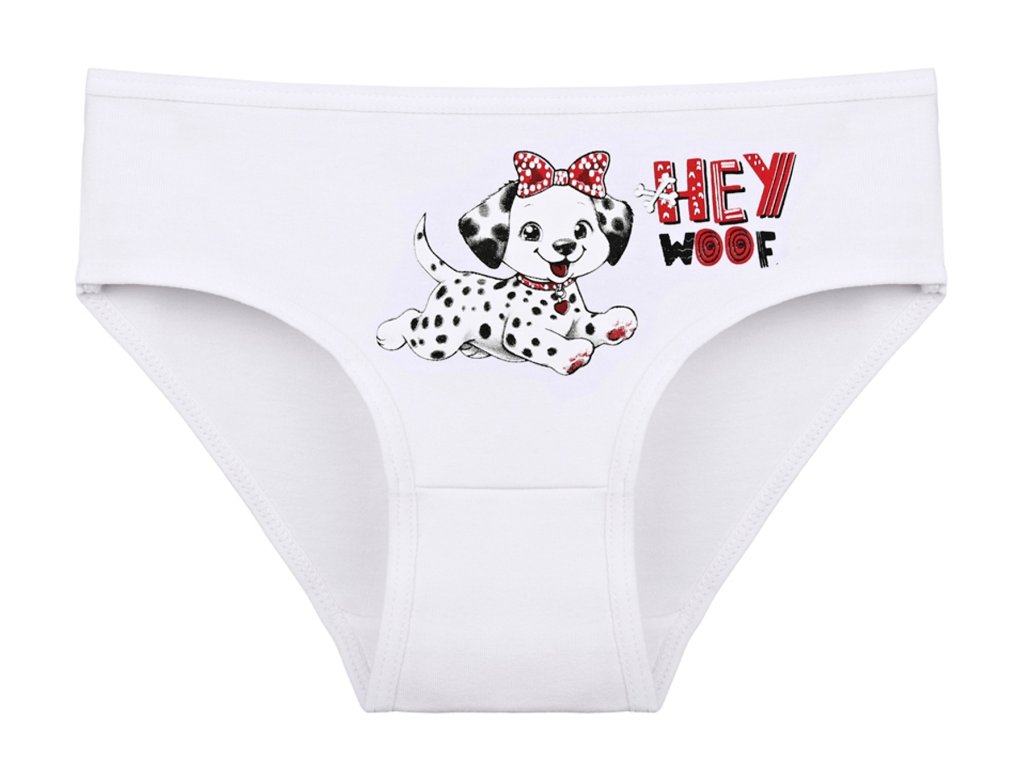 Dětské bavlněné kalhotky Emily. Dětské kalhotky klasického střihu jsou pohodlné a slušivé, zdobí je obrázek štěněte Dalmatina. Obzvláště oceníte materiálové složení - 95% bavlna a 5% elasten. Použitý materiál je příjemný a poddajný na dotek.