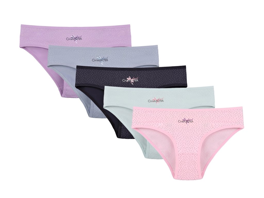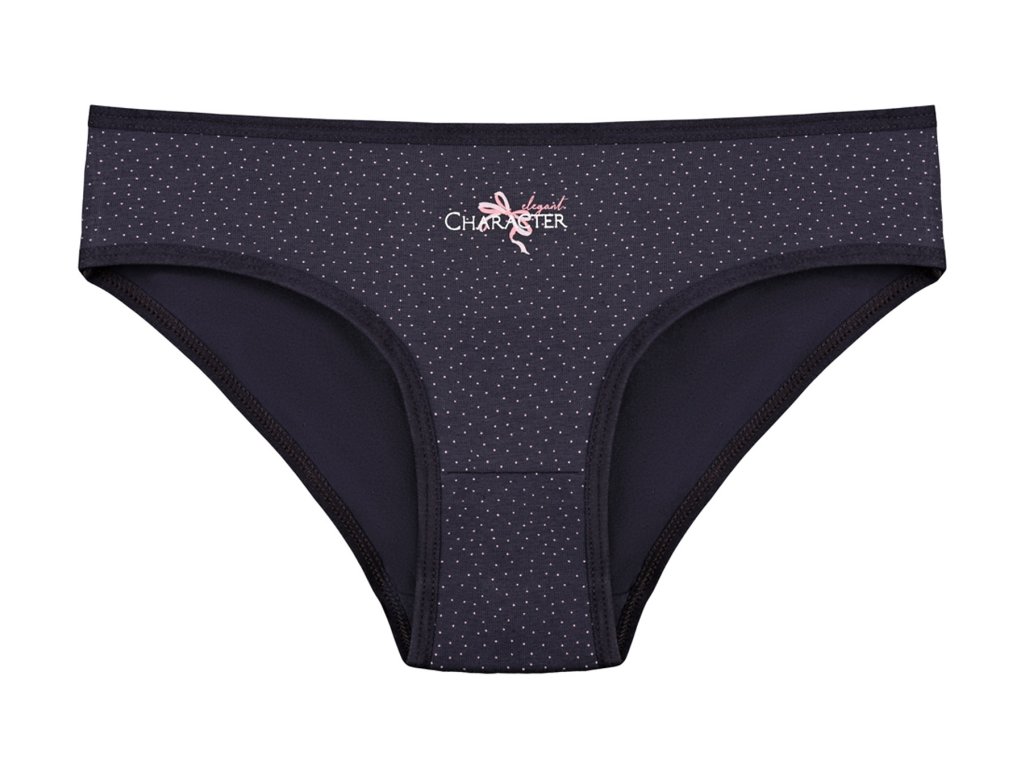 Dětské bavlněné kalhotky Karolína. Dětské kalhotky klasického střihu jsou pohodlné a slušivé, zdobí je drobné puntíky a nápis. Obzvláště oceníte materiálové složení - 95% bavlna a 5% elasten. Použitý materiál je příjemný a poddajný na dotek.