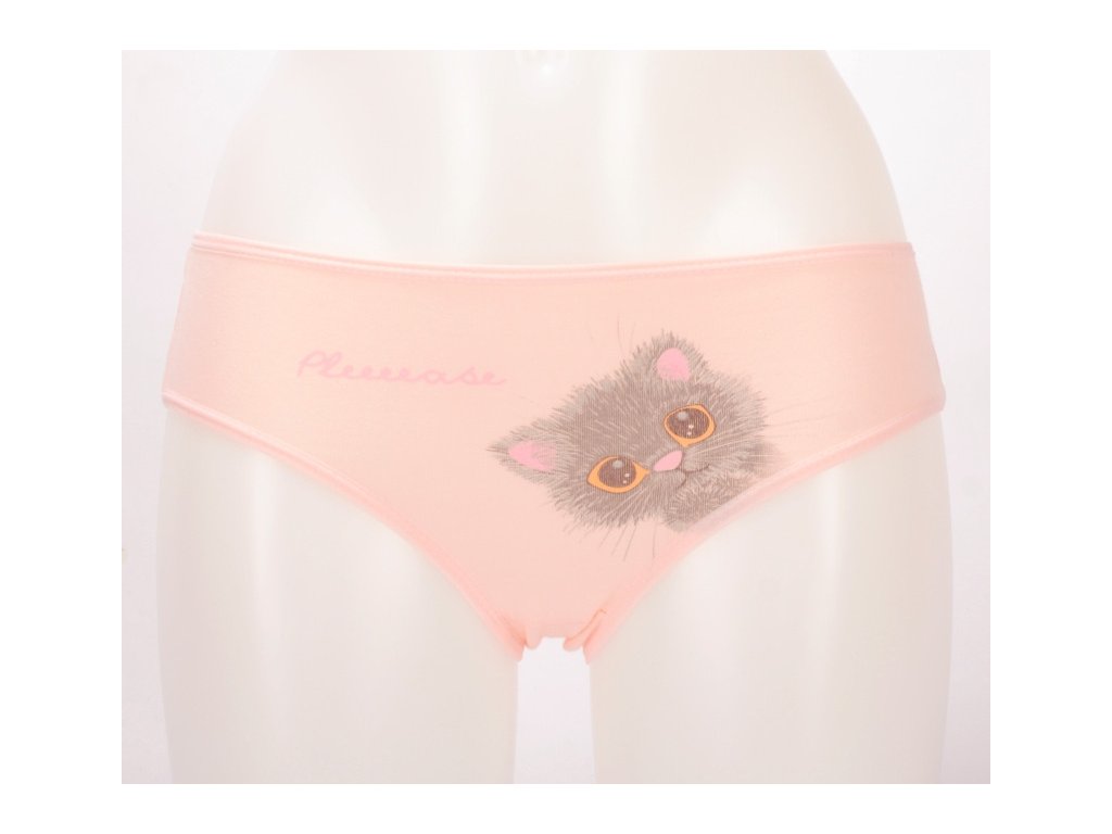 Dětské bavlněné kalhotky Lucia. Dětské kalhotky klasického střihu jsou pohodlné a slušivé, zdobí je obrázek kotěte. Obzvláště oceníte materiálové složení - 95% bavlna a 5% elasten. Použitý materiál je příjemný a poddajný na dotek.