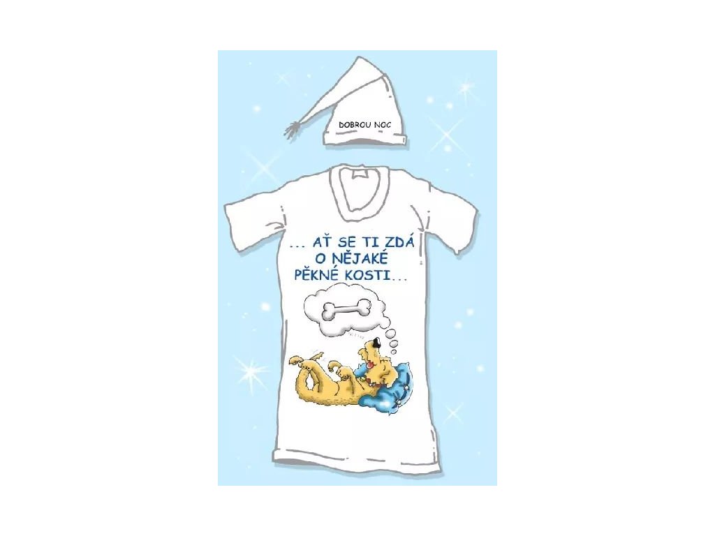 Noční košile s čepičkou AŤ SE TI ZDÁ O NĚJAKÉ PĚKNÉ KOSTI pánská