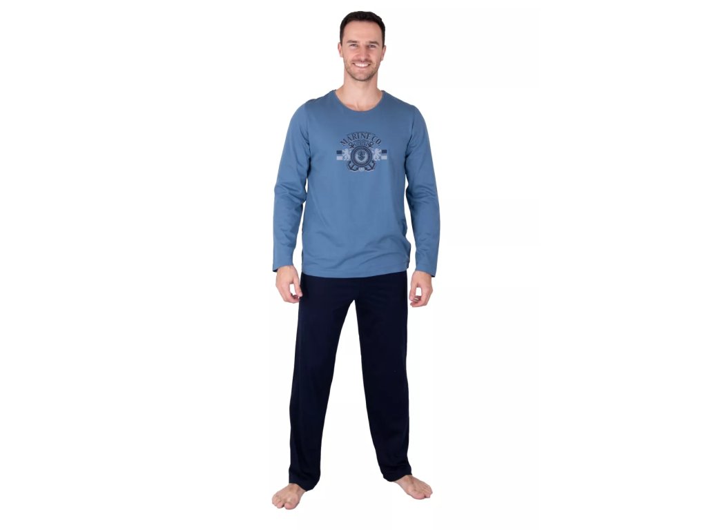 Pánské pyžamo s dlouhým rukávem a dlouhými kalhotami Gabor HOTBERG. Jednobarevné tričko je s obrázkem kotvy a nápisem ´MARINE CO.´. Jednobarevné kalhoty jsou šité bze kapes a mají volnou gumu v pase. Pyžamo je ušité z kvalitní měkké bavlny, která poskytuje maximální komfort při nošení.