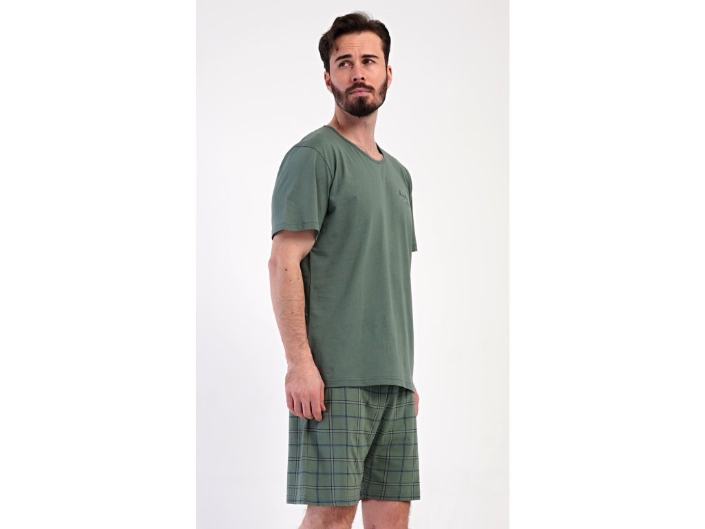 Pánské bavlněné šortkové pyžamo Ralph. Pánské pyžamo se skládá z trička s krátkým rukávem a krátkých šortkových kalhot. Tričko s kulatým výstřihem zdobí na hrudi menší nápis Himalaya. Tričko doplňují kárované šortky, které mají v pase gumu, šňůrku na stažení a praktické kapsy. Použitý materiál s obsahem bavlny 100% je příjemný a poddajný na dotek.