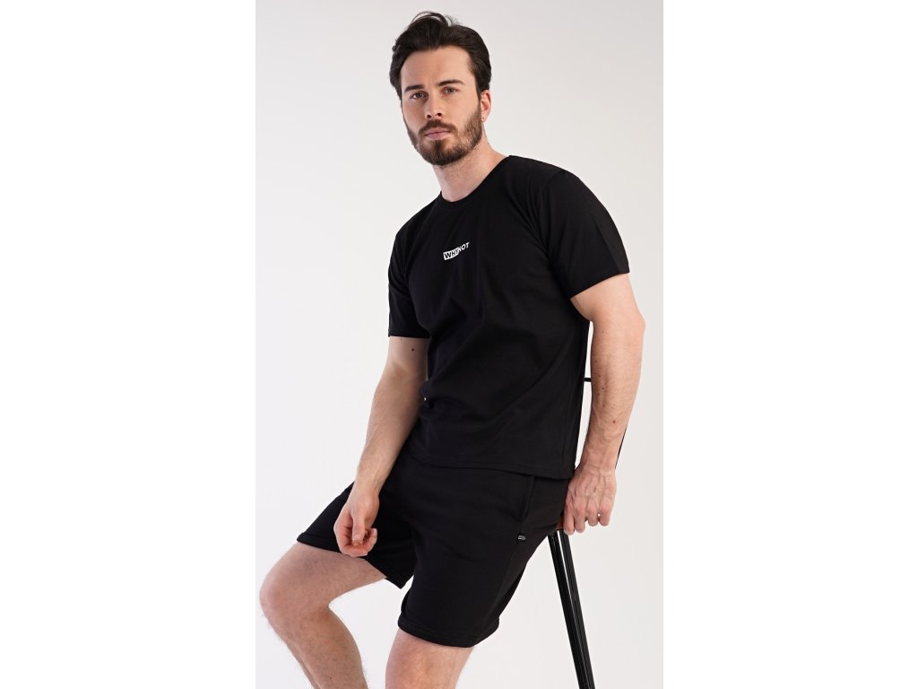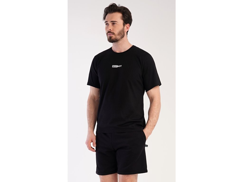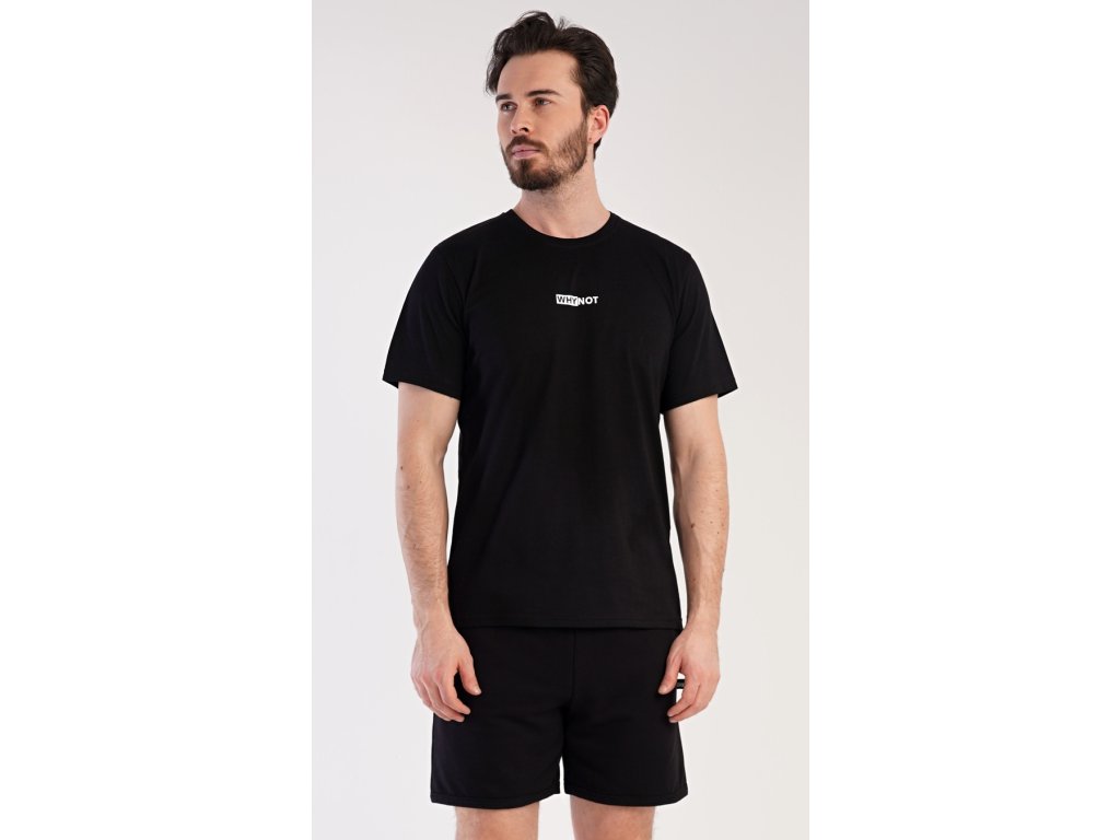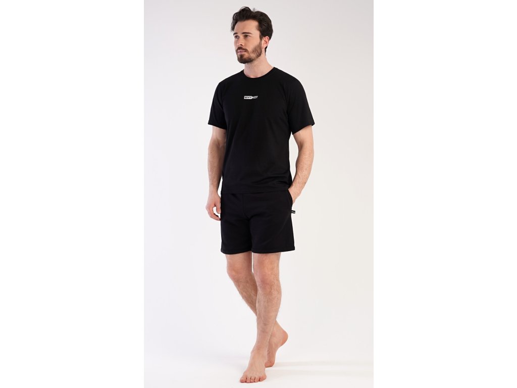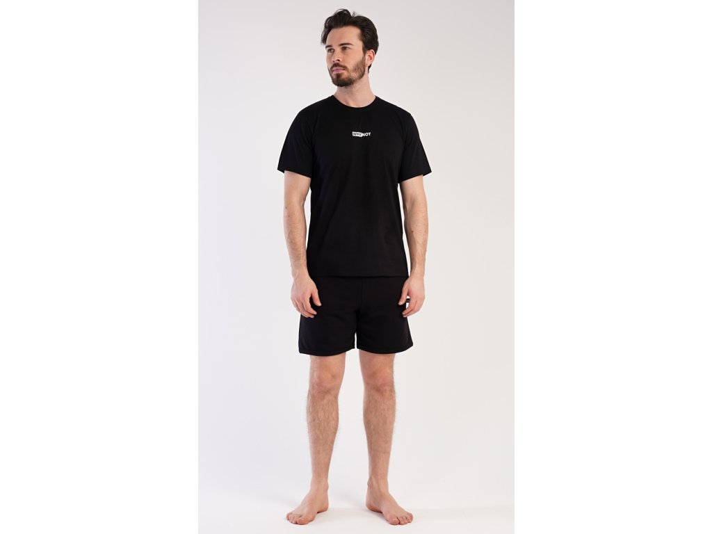 Pánské šortkové pyžamo Thomas. Pánská souprava se skládá z trička s krátkým rukávem a krátkých šortkových kalhot. Tričko s kulatým výstřihem zdobí drobný nápis. Jednobarevné šortky mají v pase gumu, šňůrku na stažení a praktické kapsy. Použitý materiál je příjemný a poddajný na dotek. Obsah bavlny u trička je 100% a u šortek 70%. Tato souprava je vhodná i na denní nošení.