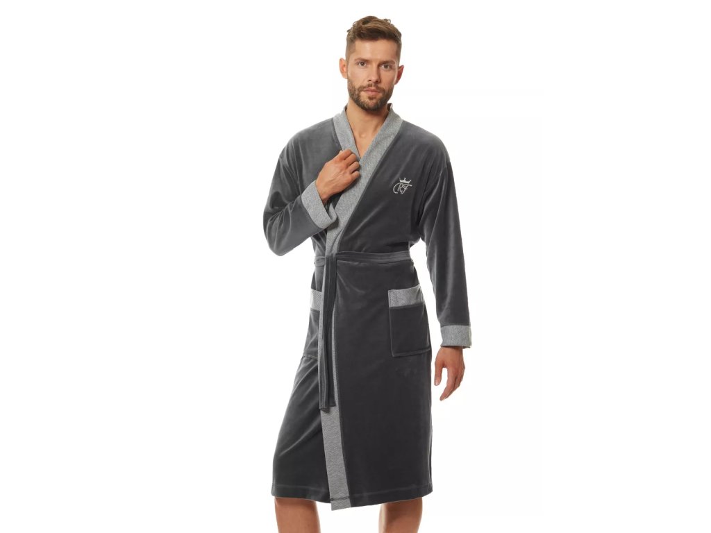 Pánský župan na zavazování s límcem Royal grafit L&L. Župan je s obrázkem ´RF´, barevným lemem a dvěmi kapsami na bocích. Župan dopřeje pocit pohodlí a tepla při odpočinku, proto je vhodný na celoroční nošení.