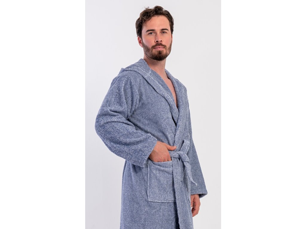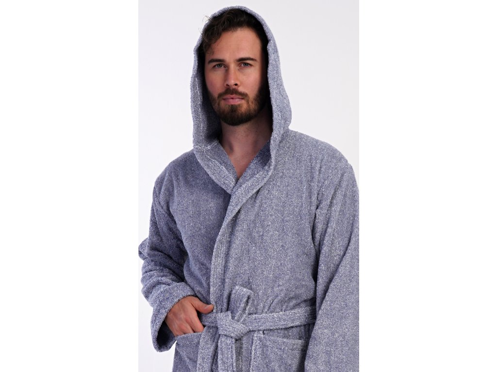 Pánský bavlněný froté župan s kapucí Luis. Pánský dlouhý župan s kapucí a páskem ke stažení je vhodný po koupeli i na povalování se doma na gauči. Froté župan má praktické kapsy, které oceníte při návštěvě wellness. Použitý bavlněný materiál je příjemný a poddajný na dotek.